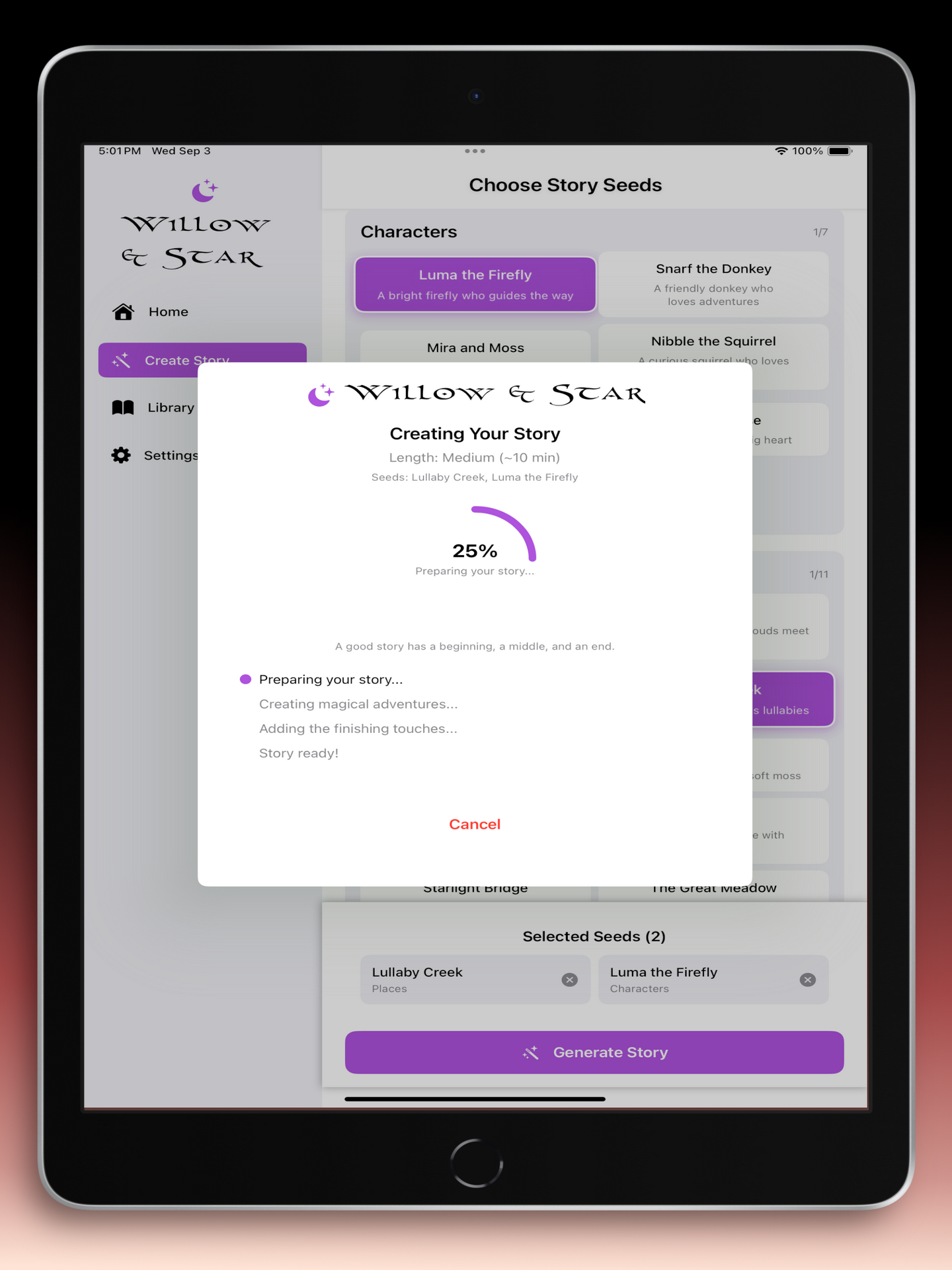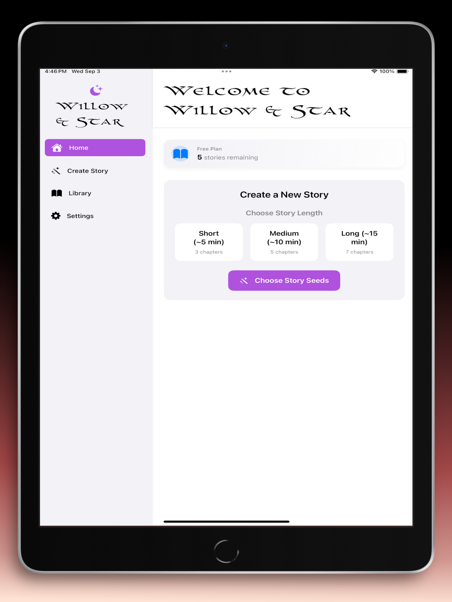 No repeats, no reruns. Willow and Star creates new bedtime stories every night. Castles today, cloud villages tomorrow, all spun from a cozy imagination.